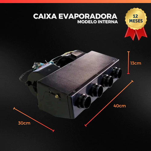 -Caixa evaporadora de 20.000 BTU Technoauto preta com FILTRO DE CABINE LAVÁVEL, termostato, chave de ventilação, com a frente externa, ou a interna com 4 furos redondos para embutir atrás do painel. VERSÃO 2026 - MAIS MODERNA E COM MELHORIAS
